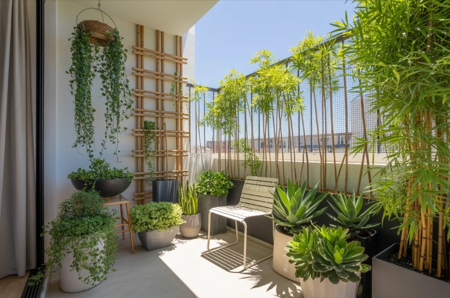 4. Wind Protection: Balconies on higher floors are often windy. Choose sturdy plants and consider using bamboo screens or trellises to shield delicate foliage.